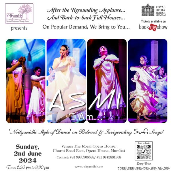 Asmi ~ our most transcendent theme that has been performed at San Francisco - California, Nanning Festival – China, Paris – France, and various cities all over India, is now being performed with back-to-back shows over the last year in Mumbai and Bangalore. Come and experience the splendor of the Self.